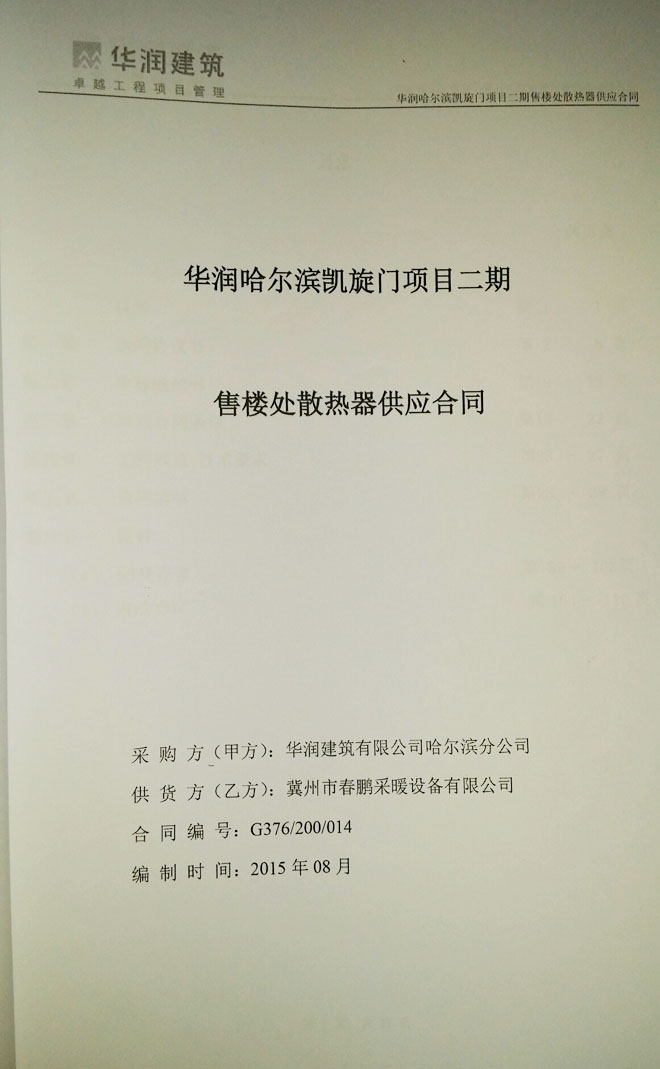 河北冀州暖氣片生產(chǎn)廠家首選冀州春鵬,春鵬是2004年建成的冀州市春鵬散熱器廠,經(jīng)過十余年的發(fā)展,現(xiàn)在是冀州市春鵬采暖設(shè)備有限公司。春鵬提供銅鋁暖氣片,鋼鋁暖氣片,內(nèi)腔無砂灰鑄鐵暖氣片、鋼制翅片管、銅鋁復(fù)合、鋼鋁復(fù)合、衛(wèi)浴鋼制柱型及地暖等百余種散熱器,銷售專線:133-1308-1167。